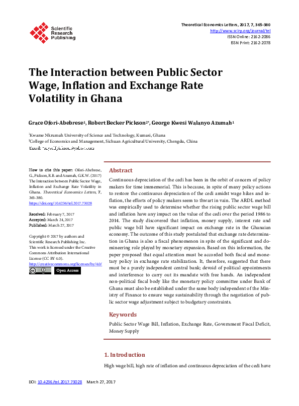 Pdf The Interaction Between Public Sector Wage Inflation And Exchange Rate Volatility In Ghana Robert Becker Pickson Academia Edu