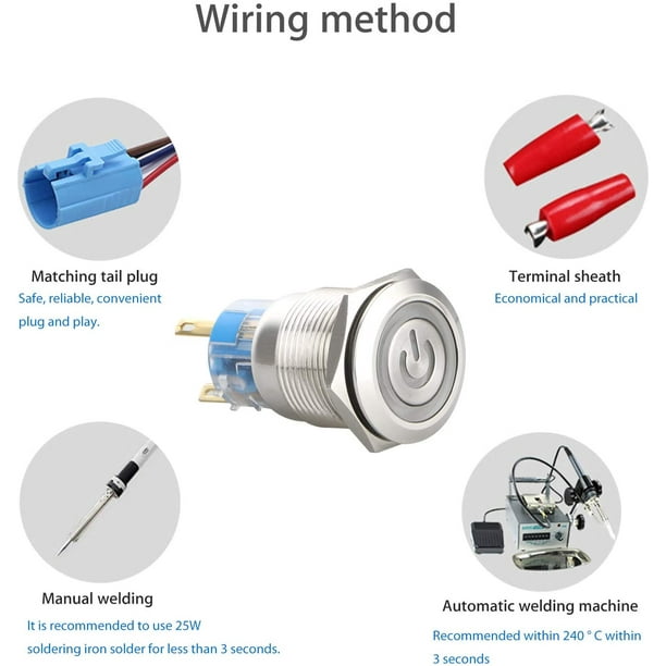 Dc 12v 19mm Metal Snap On Push Button Switch 4 Pin Car Rv Truck Boat On Off Switch Waterproof Round Marine Push Button Switch With Blue Led Light With Wire Socket